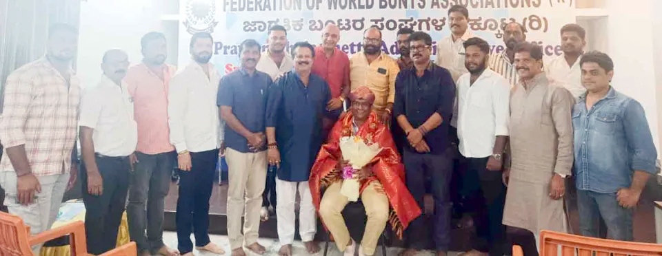 ಮಂಗಳೂರು: ಬಿಲ್ಲವ ಮಹಾಮಂಡಲದ ಅಧ್ಯಕ್ಷರೂ ಆದ ಭಾರತ್ ಕೋ-ಆಪರೇಟಿವ್ ಬ್ಯಾಂಕ್‌ನ ಮುಖ್ಯಸ್ಥ ಸೂರ್ಯಕಾಂತ್ ಜೆ. ಸುವರ್ಣ ಅವರಿಗೆ ಜಾಗತಿಕ ಬಂಟರ ಸಂಘಗಳ ಒಕ್ಕೂಟದ ವತಿಯಿಂದ ಭಾನುವಾರ ಗೌರವ ಸಮರ್ಪಣೆ ನಡೆಯಿತು.